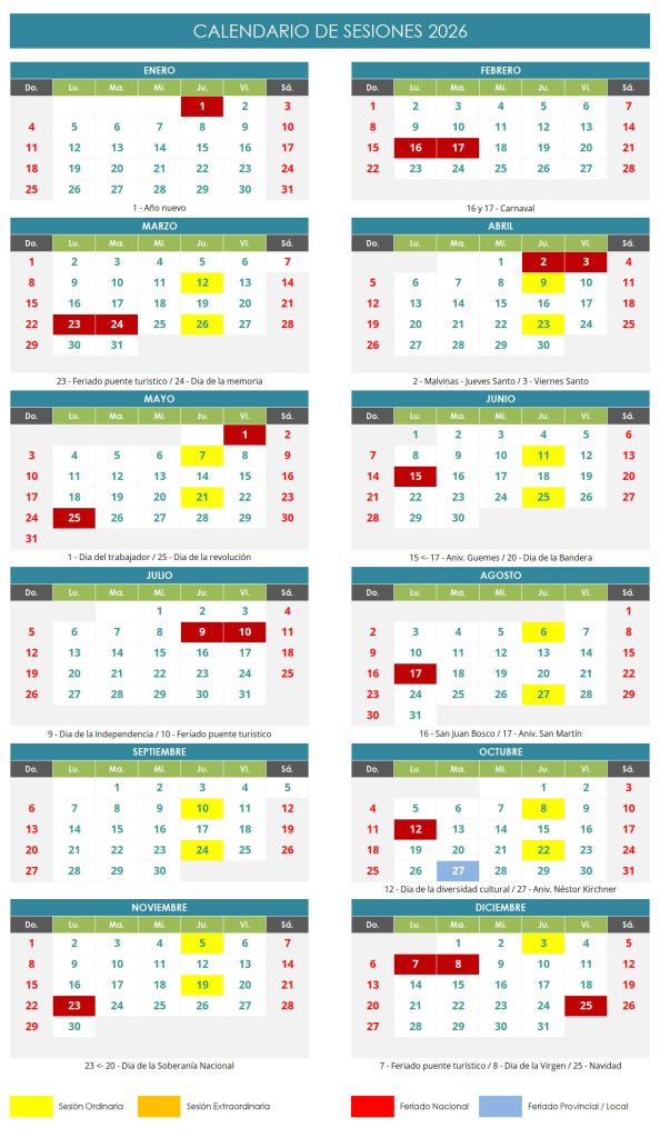 CALENDARIO DE SESIONES ORDINARIAS 2026